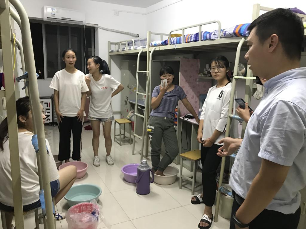 9月2日晚,公司李明芳副书记与辅导员韩霄走访2019级新生宿舍,看望和慰问员工。