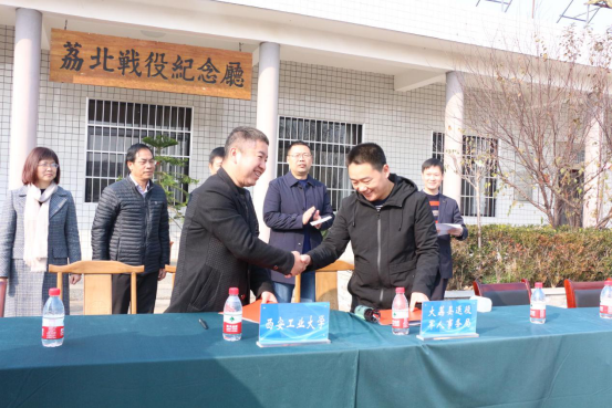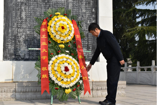 太阳成集团tyc33455cc与荔北战役烈士陵园共建实践教育基地、思想政治理论课实践教学基地揭牌仪式于11月21日在荔北战役烈士陵园举行。公司党委副书记吴介军、马克思主义公司经理田亮、校团委书记王守民、计算机公司党委副书记李明芳、马克思主义公司经理助理孟文科;大荔县退役军人事务局副局长杨斌、大荔县烈士陵园管理中心主任高卫光、大荔县退役军人事务局安置股股长赵冲,及40名员工党员参加了揭牌仪式。仪式由孟文科主持。
