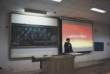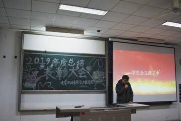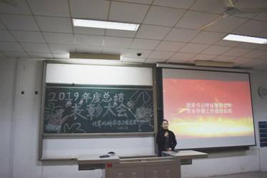 2019年12月27日下午6:30,太阳成集团tyc33455cc2019年度总结表彰大会在教1-103隆重召开,出席本次活动的有辅导员于杰老师、团委书记呼延晓蓉老师,各部门部长和全体部员干事。