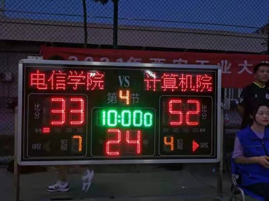 第二节伊始,4号倪思媛由于第一节的高强度对抗出现了体力不支的情况。教练王孛及时做出了替换和战术调整。于此同时7号陶颖凭借良好的左手技术也对电信公司进行了杀伤。在第二节最后几秒,陶颖接过传球完成了一次精彩的压哨三分。计算机院手持更大的优势进入第三节。