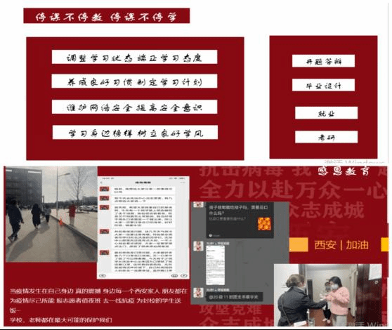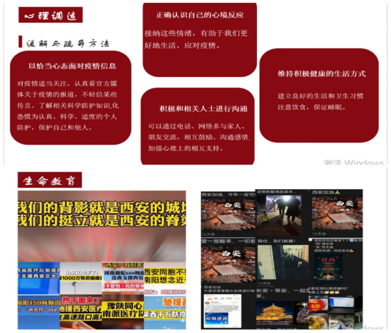 本次活动切实结合疫情防控政策,围绕如何调节自我情绪展开。19060722班级召开特色班会,并于公众号发表会议概要,进行公司内宣传学习。会议主要包含四部分内容:宣传疫情防控方法;鼓励员工保持乐观;分享缓解情绪方式;提供专业心理调节渠道。18060721班召开主题班会,会议内容主要分为心理调适、生命教育、学风引导、感恩教育四个方面,旨在帮助同学们合理调控情绪,缓解心理压力,提高战胜疫情信心,保持健康平和的心态来正常的学习和生活,共同度过这一段艰难时光,引导同学们构建正确的世界观、人生观、价值观。公司其他班级结合班级特色,各有侧重,有序开展。