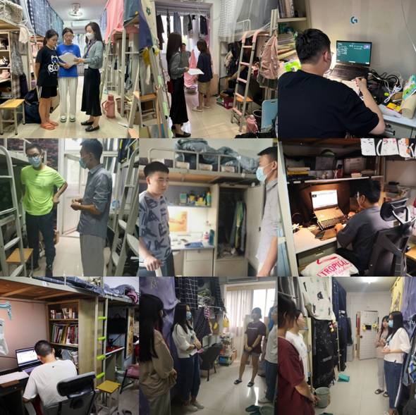此外,辅导员们深入细致地关怀员工的生活情况,了解大家有无生活上的困难,提醒同学们按时做核酸、每天开窗通风、及时清理垃圾,并强调静态管理要求:非必要不出宿舍,外出要戴好口罩,不堂食、不聚集;如有困难,及时告知辅导员协调解决。目前,大部分宿舍卫生状况良好,员工们线上教学秩序井然。