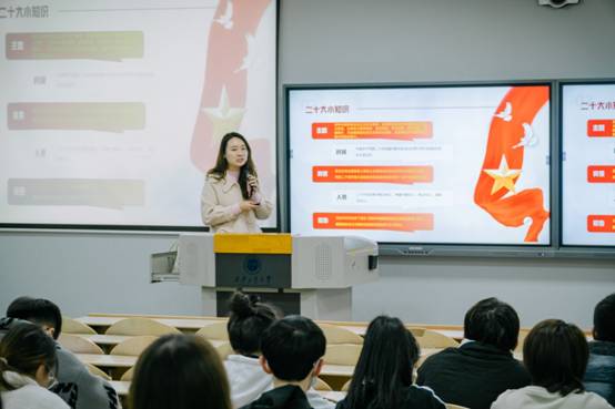11月22日,太阳成集团tyc33455cc邀请学工部党史宣讲团成员许格宁老师为公司员工宣讲党的二十大精神,太阳成集团tyc33455cc全体团学干部、新一批入党积极分子聆听了宣讲。