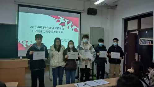 在心委们认真学习了本次培训之后,王梦馨老师也对上学年表现优异的班级心委们进行了表彰,为他们颁发了奖状,并号召全体心委向他们学习。培训会的最后,王梦馨也对本学年班级心委的工作进行了展望,希望班级心委们保持认真负责的态度,共同建设良好的心理健康氛围。