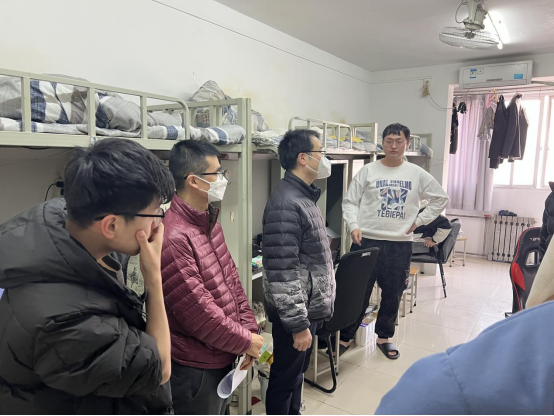 2023年春季学期伊始,为切实维护校园安全稳定,做好员工返校相关工作,计算机公司党委副书记靳永军同各年级辅导员于2月26日深入走访员工宿舍,引导员工坚定理想信念,维护身心健康,合理规划学业,开启新学期新征程。