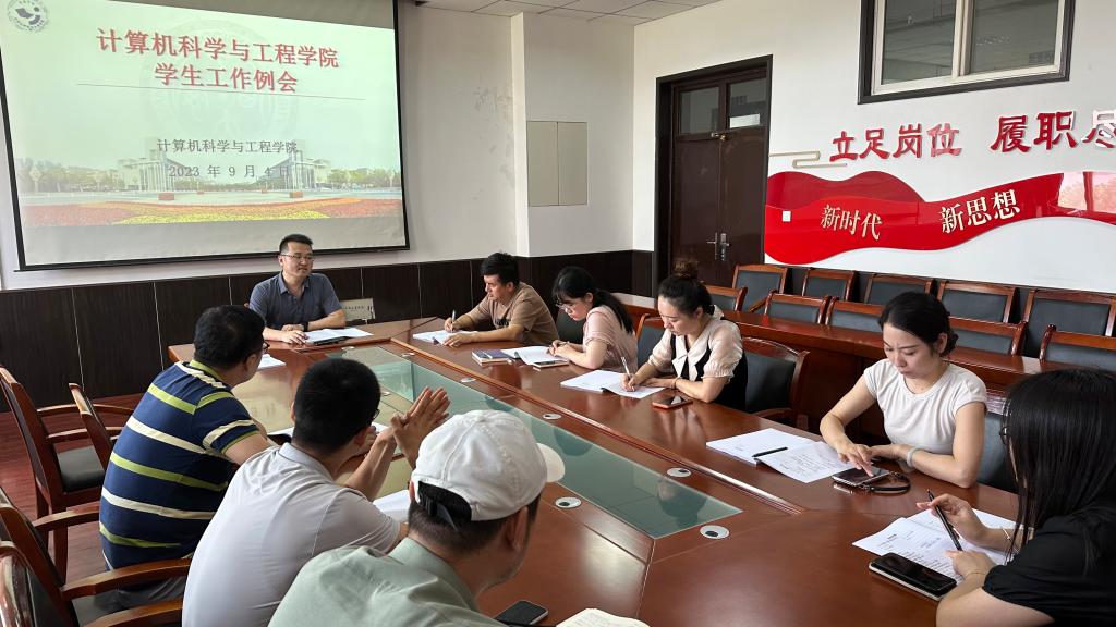 9月4日上午10点,太阳成集团tyc33455cc在工1-306开展员工员工工作例会,会议由党委副书记靳永军主持,全体辅导员参加。