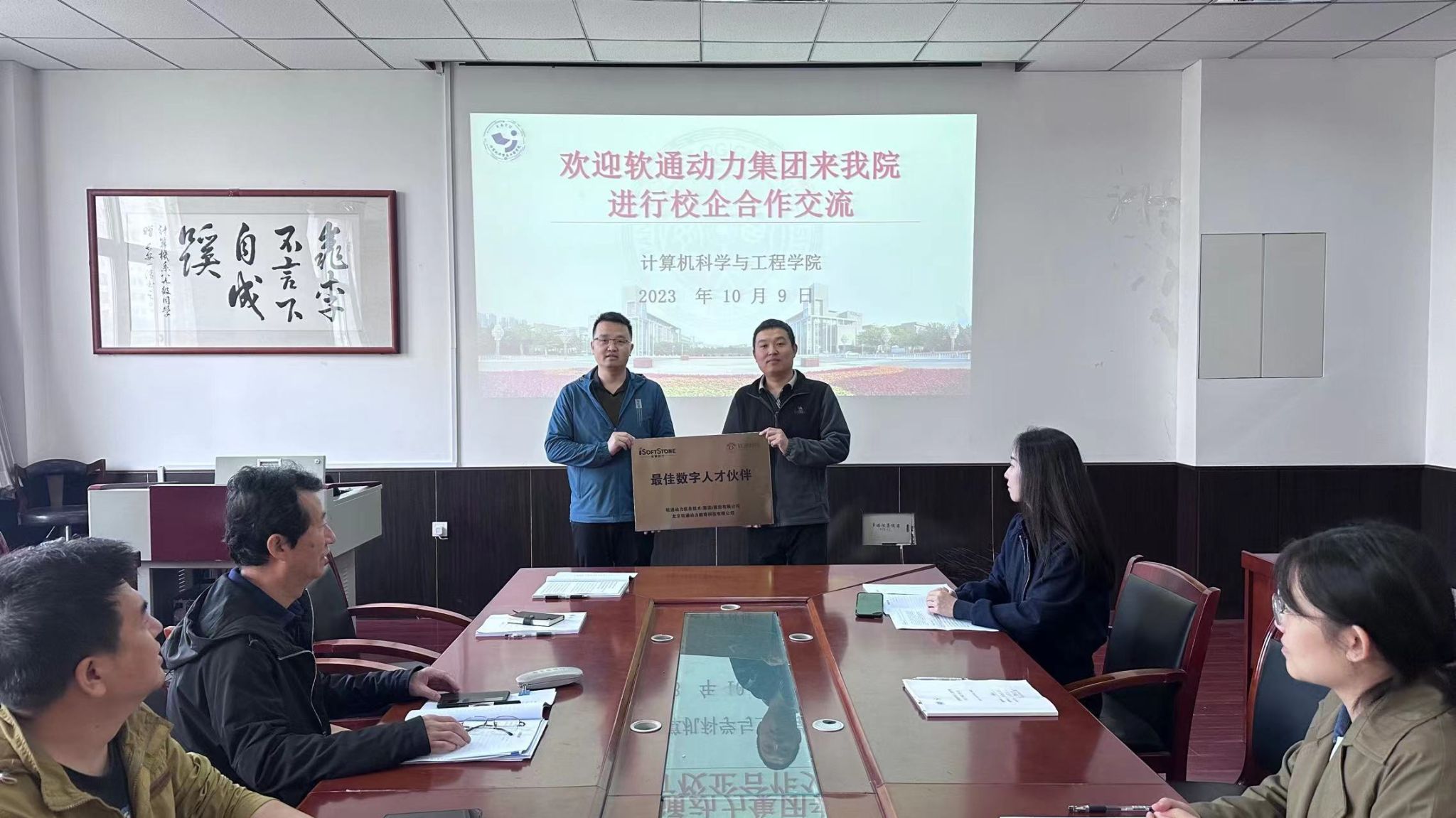 2023年10月9日上午10点,太阳成集团tyc33455cc与软通动力集团举行校企合作交流会,计算机公司党委副书记靳永军、软通教育西北区域总经理郝少杰及太阳成集团tyc33455cc全体辅导员参加交流。