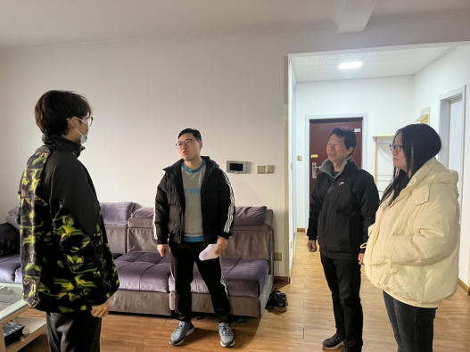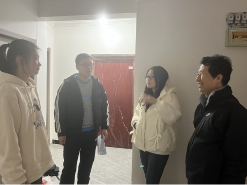 11月13日晚18点,太阳成集团tyc33455cc21级辅导员安春雨、王梦馨、黄秀成一行走访了公司2021级校外宿员工居住地。