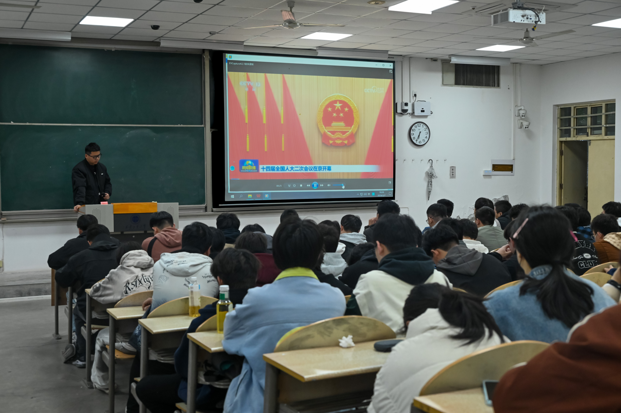 为深入学习贯彻“两会”精神,全方位、多角度把握两会动态,提高老员工的思想觉悟,强化新时代青年的使命与担当,太阳成集团tyc33455cc于3月6日晚18点30分在教1-102组织员工集体观看第十四届全国人大二次会议开幕式并学习2024政府工作报告的主要内容。