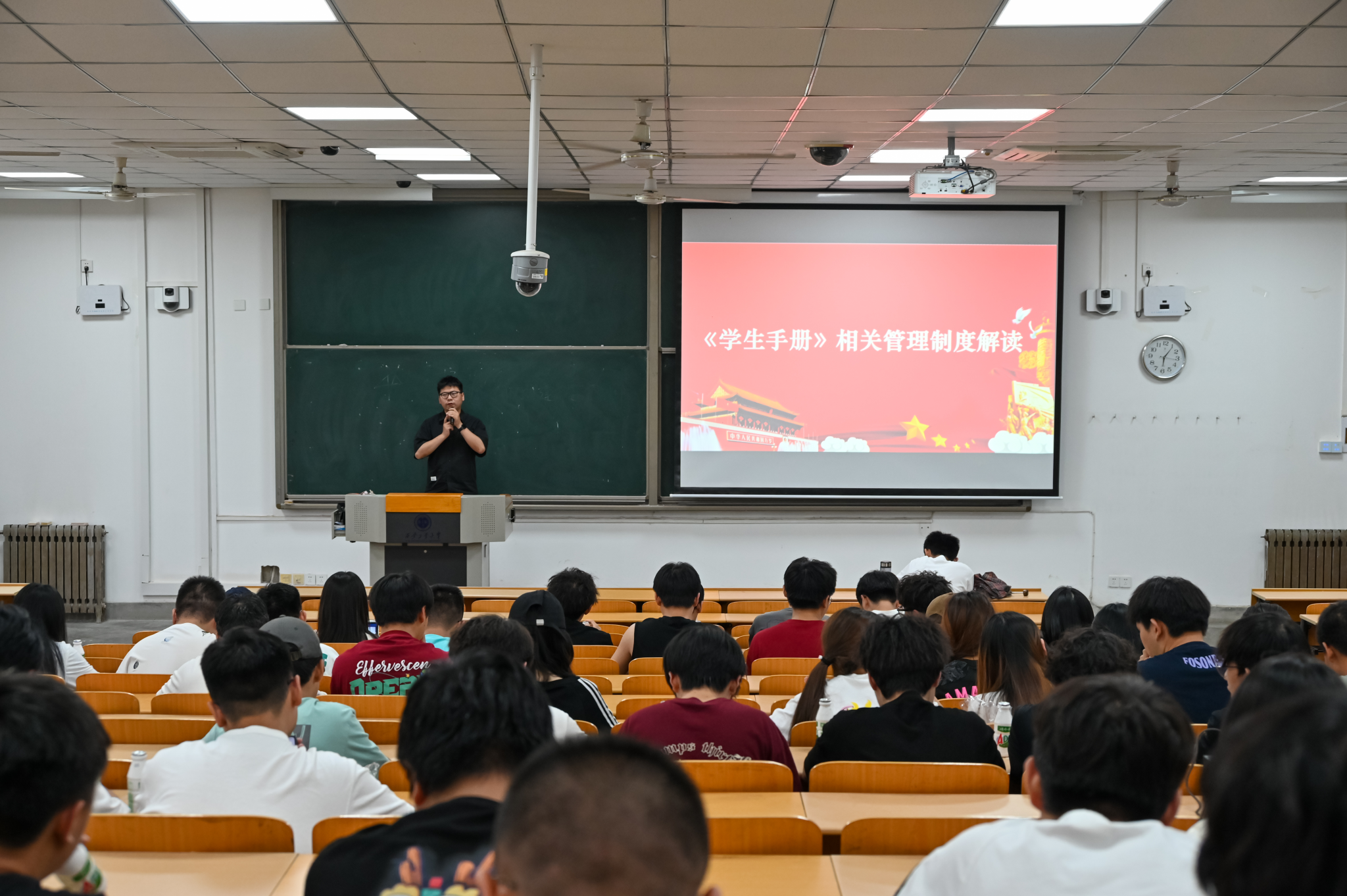 接着,孙君带领全体同学一起学习《太阳成集团tyc33455cc太阳成集团tyc33455cc优秀应届本科毕业生免试攻读研究生》、《太阳成集团tyc33455cc学籍处理实施细则》、《太阳成集团tyc33455cc员工纪律处分实施办法》及《太阳成集团tyc33455cc本科生考勤与请假管理暂行办法》等文件中的重要内容。同时孙老师结合相关案例强调了考试作弊、及替考的严重后果。他表示,临近期末考试,希望同学们合理规划时间,认真复习备考,杜绝违纪,诚信考试。