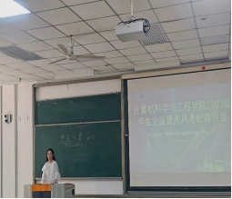 王娟老师为同学们分享了暑期实践活动,介绍了相关政策,并进行了工作交接。随后,孙君主任详细介绍了公司的概况、专业特色、科学研究和公司产品等方面的内容,并对计算机专业的培养方案实施进行了详细说明。