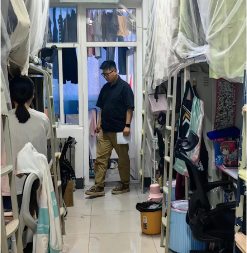 毕业班辅导员深入员工宿舍,逐一排查员工离校情况,做好统计与上报,确保24届毕业生平稳离校。