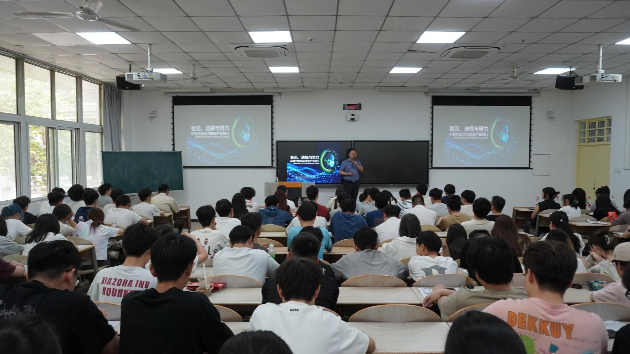 报告会上,蔡鹏先生以“看见、选择与努力——AI时代如何与未来产业同行”为主题,结合自身丰富的行业经验和深刻洞察,为同学们带来了一场启迪智慧的讲座。他首先从“看见”的角度出发,分析了AI时代未来产业的发展趋势和机遇,指出人工智能、大数据、云计算等前沿技术正深刻改变着传统产业格局,为同学们描绘了一幅充满无限可能的未来产业蓝图。
