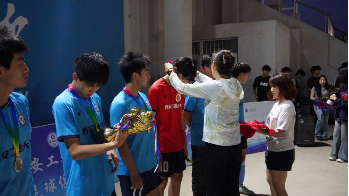 在这片绿茵场上,每一滴汗水都闪耀着梦想的光芒,每一次冲刺都承载着团队的荣耀。他们每个人都在自己的位置上发光发热——有人不知疲倦地奔跑,有人默默筑起防线,有人关键时刻挺身而出。每一次全速奔跑的脚印,每一次奋不顾身的扑救中都体现着他们的风采,体现着他们奋勇拼搏,团结协作的精神.让我们携手期待下一次“西工杯”足球赛的到来,祝愿他们继续用热情点燃球场,用信念书写传奇,也祝愿他们再接再厉,取得更好的成绩。
