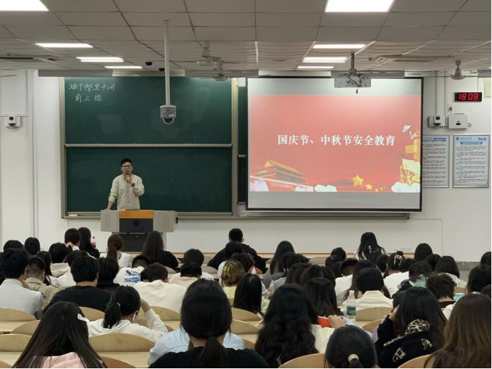 明晰规划守底线,安全教育贯始终:三位辅导员详细讲解了国庆、中秋双节放假安排,并重点强调“去向登记”制度,提醒同学们如实填报行程,筑牢个人安全第一道防线。在安全教育环节,辅导员结合典型案例,从防范电信诈骗、消防安全、实验室规范等方面展开讲解,引导员工树立“安全无小事”的责任意识。