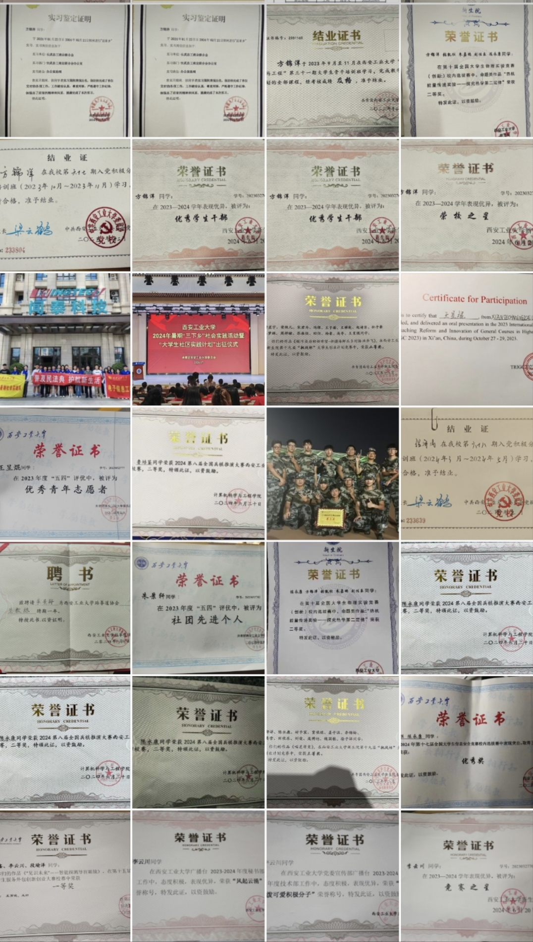 挑战杯新生院三等奖/网络攻防大赛三等奖/ 中国老员工服务外包创新创业大赛校赛一等奖/数学建模新生杯三等奖 |