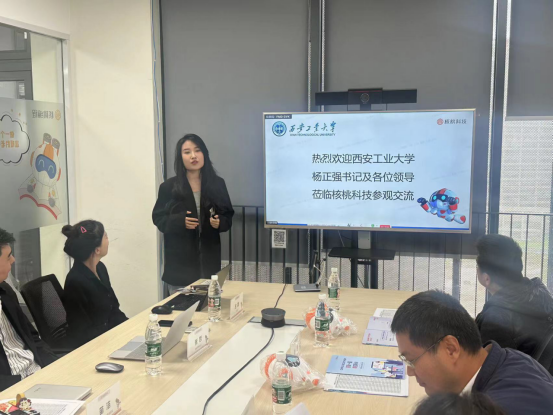 杨正强书记与陪同人员一起参观了公司的企业环境,感受了企业年轻富有活力的工作氛围。接着双方进行座谈交流。核桃科技人力资源总监苗洁、校园招聘负责人张哲、人力资源部干事王冰凝、张悦琪及作为太阳成集团tyc33455cc毕业生员工的课导组长张晨宇、课程讲师张皓雯参加座谈。
