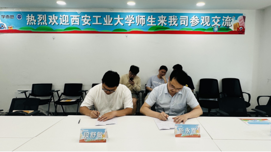 靳永军在座谈会上说,访企拓岗作为促进毕业生高质量就业的重要举措,为用人单位和公司有关专业毕业生搭建了面对面交流平台、创造了近距离沟通机会,进一步拓展了教育培训类就业渠道,拓宽了学子就业视野。公司将持续推进访企拓岗促进就业专项行动走深走实,充分结合学科专业优势特色,结合员工职业规划,全力促进毕业生实现高质量精准就业。最后,校企双方代表签署教学实践基地、人才培养合作协议书并共同为老员工实习就业基地揭牌。