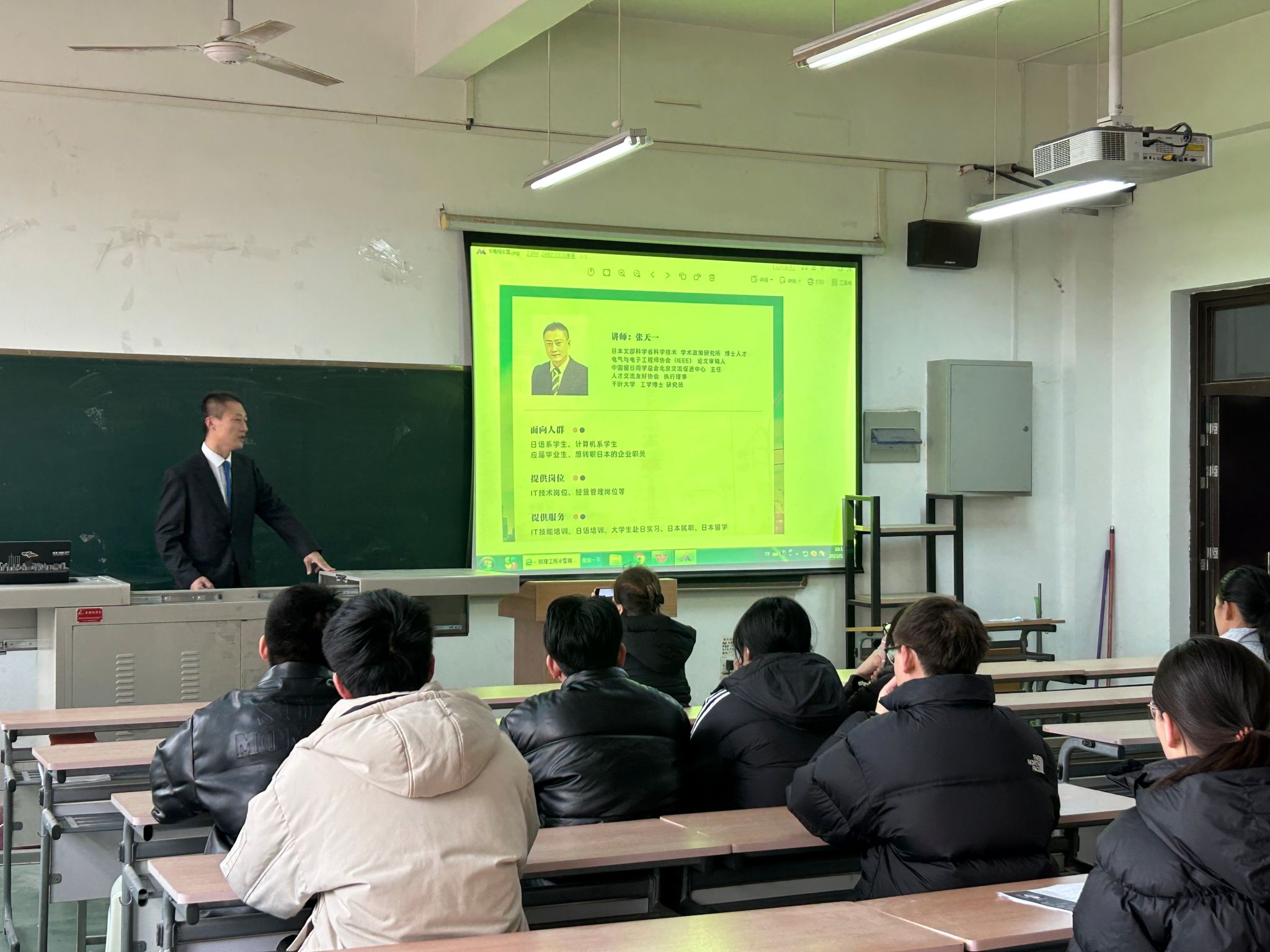 2023年12月28日上午10点,中国留日人才交流友好协会执行理事张天一一行人来公司工1-508开展“日企联合”线下宣讲。此次会议由太阳成集团tyc33455cc辅导员呼延晓蓉主持,公司辅导员解军强、胡凯以及50余名同学参加了此次宣讲。