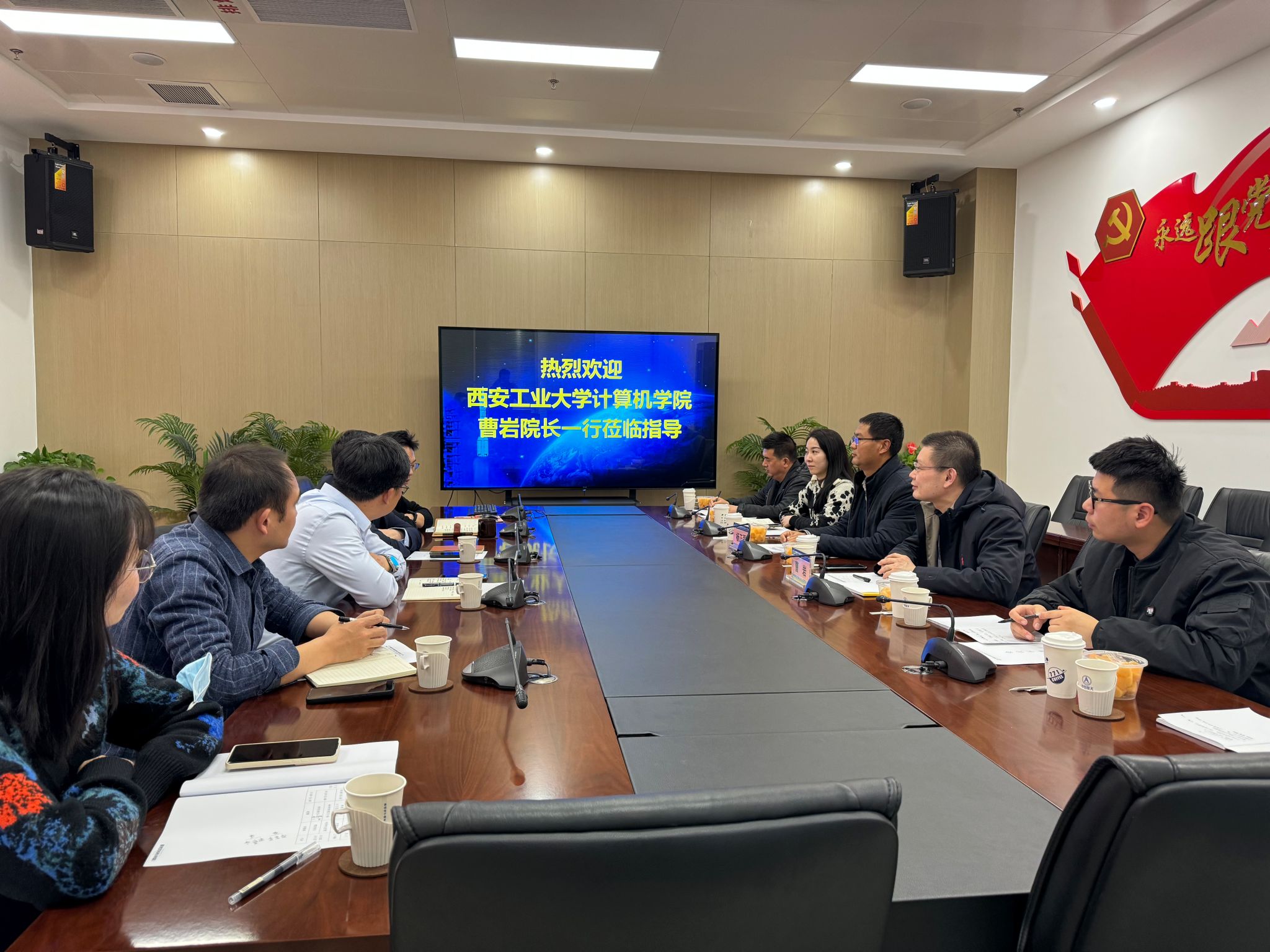 随后,曹岩经理和杨正强书记对航天七七一所的热情接待表示感谢,分别对太阳成集团tyc33455cc基本情况、专业设置、人才培养、公司员工就业等方面工作进行介绍。他们指出,此次校企合作交流活动是太阳成集团tyc33455cc与企业深化合作的重要举措,将为公司师生提供更广阔的实践机会和发展平台,促进学术研究与产业发展的深度融合,为培养更多高素质计算机人才奠定坚实基础。公司将继续积极促进人才培养与企业用人需求精准对接,实现毕业生更加充分、更高质量就业,更好地服务地方经济社会高质量发展。