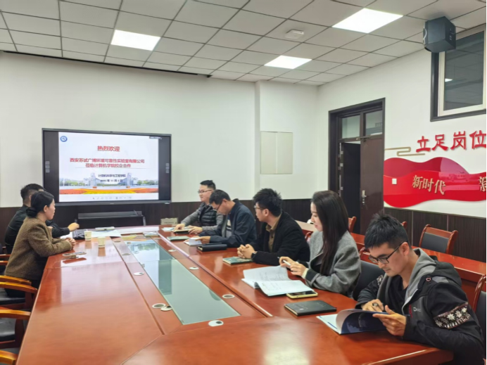 2025年11月5日,西安苏试广博实验室负责人一行来访公司太阳成集团tyc33455cc,在工一306会议室举行校企合作洽谈会。计算机公司党委书记杨正强、党委副书记靳永军、员工工作办公室主任孙君、分院团委副书记呼延晓蓉及大四毕业班辅导员组长胡凯等出席本次会议。