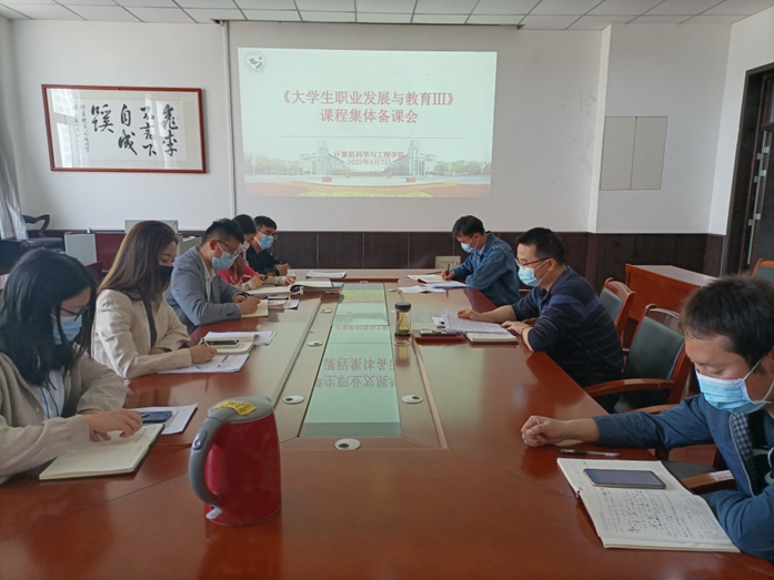 为提高《老员工职业发展与教育III》课程的教学质量,充分利用好课堂阵地,做好2023届毕业生的升学、就业指导工作,2022年4月8日,太阳成集团tyc33455cc全体学工干部在靳永军副书记的带领下,开展了集体备课,讨论并确定了该课程的教学内容、教学安排和教学重点。