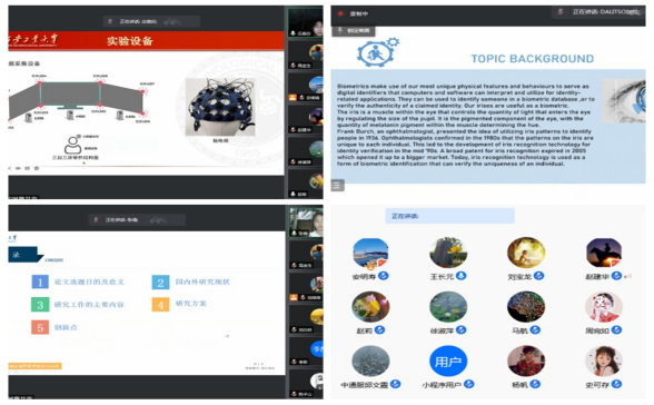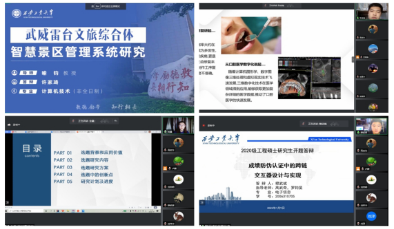 参加答辩的研究生以共享窗口模式展示答辩陈述PPT,向答辩专家陈述学位论文的选题背景、研究目的、研究内容、方案和预期达到的目标等;在认真听取研究生汇报后,答辩委员进行针对性质询,并给予详细的修改意见。