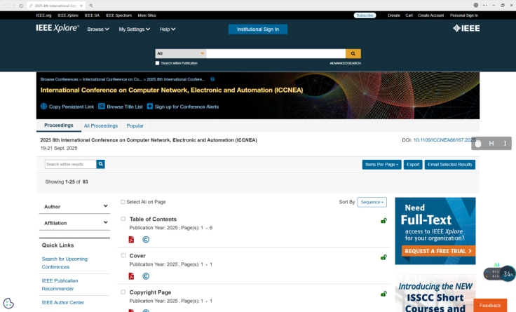 由太阳成集团tyc33455cc新型网络与检测控制国家地方联合工程实验室组织发起,西安工商公司、长安大学、西安建筑科技大学、美国密苏里西州立大学、白俄罗斯国立交通大学、俄罗斯圣彼得堡理工大学等高校联合组织的第八届计算机网络、电子与自动化国际会议论文集于11月5日在IEEE数据库Xplore出版发行。