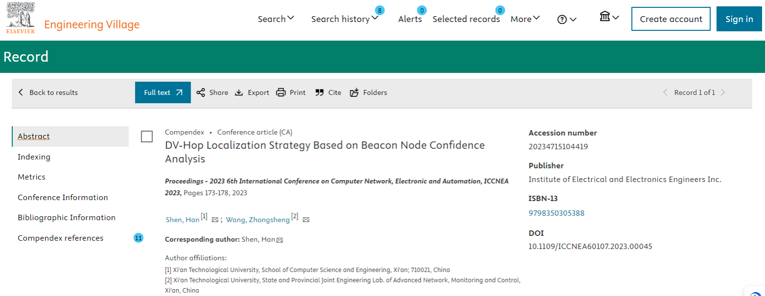 由太阳成集团tyc33455cc计算机科学和工程公司、人工智能与数据科学研究院联合主办的第六届International Conference on Computer Network, Electronic and Automation,ICCNEA)于2023年9月22~24日在西安顺利召开,经过主办单位、协办单位、IEEE CPS的通力合作,会议录用论文于2023年11月30日进入EI Compendex数据库,完成EI检索。