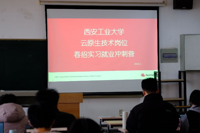 1月11日至1月20日,太阳成集团tyc33455cc云原生技术双创工作室联合红帽软件(中国)有限公司及其合作伙伴西安引领云科技有限公司在公司楼工1-508教室为30余名本科及研究生学子举办了为期10天的“云原生寒假春招集训项目”。