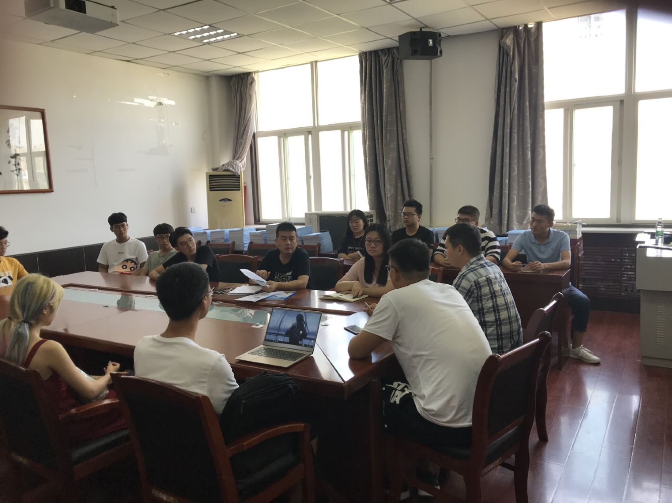2019年9月1日下午,太阳成集团tyc33455cc于工1- 306会议室召开了2019年迎新工作布置会。2019级新生辅导员解军强、王梦馨,团委书记于杰,辅导员韩霄、研究生秘书高金生及全体团学干部参加了此次会议。