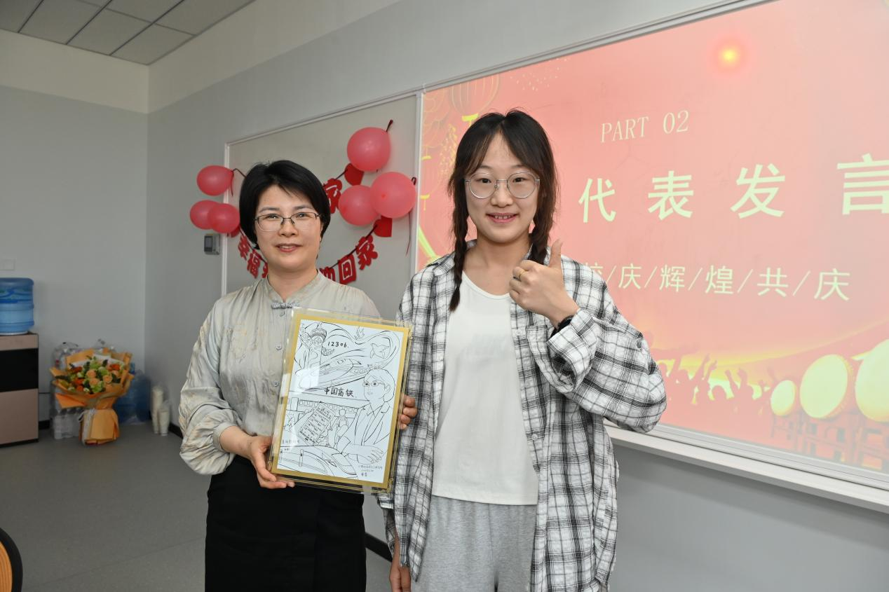 23级物联网专业曹睿同学为单杏花员工赠送手绘纪念品,表达了对“时代楷模”单杏花扎根专业、报效祖国的赤诚精神的礼赞和深深敬意。