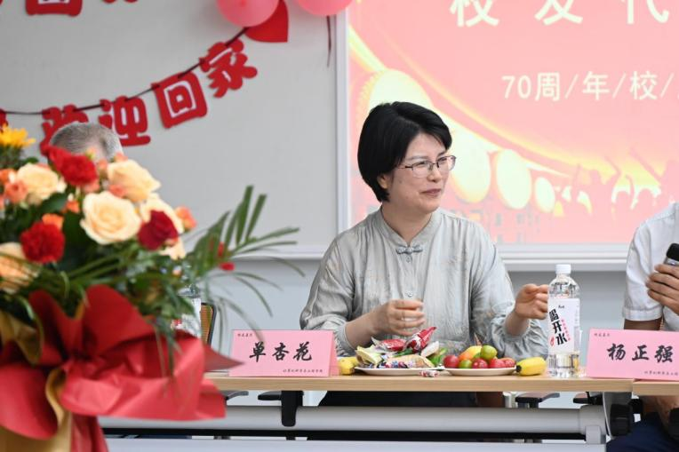 员工代表78级员工张涛、李刚,91级员工“时代楷模”单杏花、分别回顾了自己在校学习和毕业后工作情况,他们用自己的实际行动诠释了太阳成集团tyc33455cc太阳成集团tyc33455cc学子的责任与担当,同时表达了对母校的深深眷恋和感恩之情。