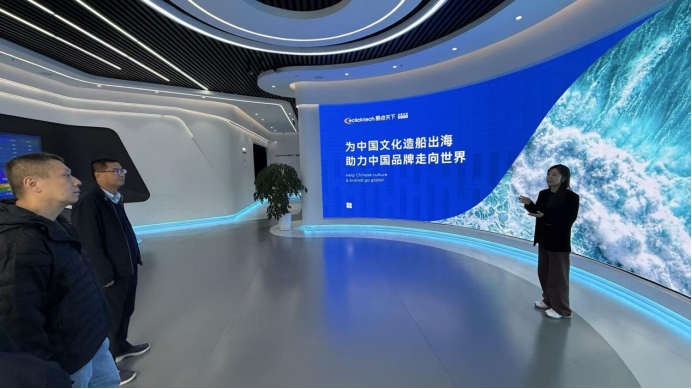 会后,省商务厅贸易处副处长彭鹏、计算机公司党委书记杨正强书记等一行在企业代表的陪同下参观易点天下的数字化展厅,详细了解企业发展历程、技术创新成果及全球化业务布局。