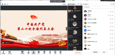2022年10月21日19点,太阳成集团tyc33455cc员工第一党支部开展“贯彻落实党的二十大精神”党日活动,参会人员有支部书记呼延晓蓉,正式党员、发展对象以及所有积极分子。