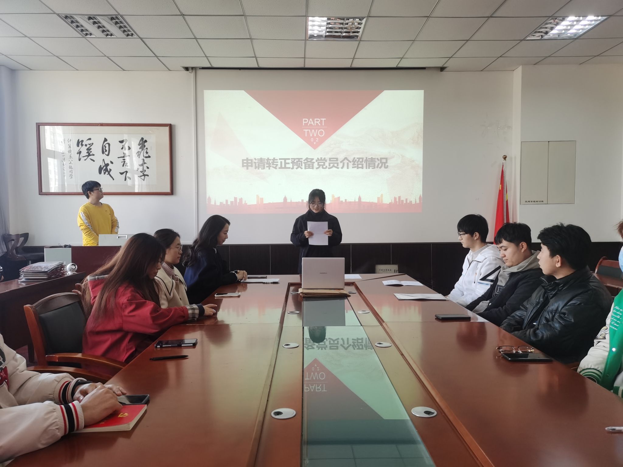 最后,党支部书记呼延晓蓉同志做总结讲话。她希望转正的同志们要落实责任担当,勇于挑起担子,要以更高的标准来要求自己,尽职尽责。转正会议结束不是一个终点,而是一个新的起点,各位同志在以后要继续对自己严格要求,不仅在形式上入党,而且要做到在思想上入党。要坚持学习党的理论知识,时刻保持时不待我的紧迫感,只争朝夕,不负韶华,以永不懈怠的精神状态和一往无前的奋斗姿态,积极作为,努力成为一名优秀的共产党员!