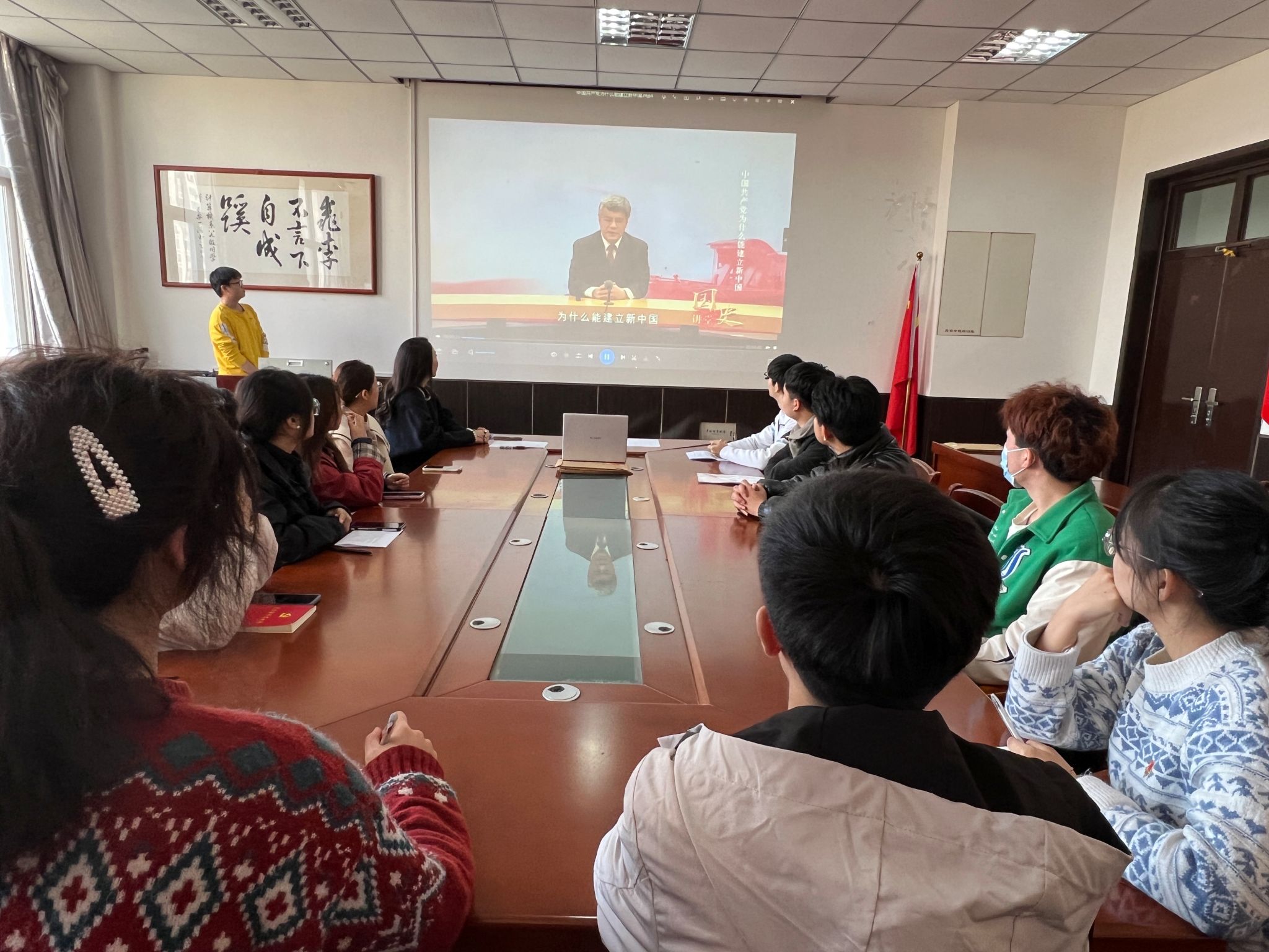 全体党员观看“国史讲堂”系列理论视频之“党史微课”系列《中国共产党为什么能建立新中国》。