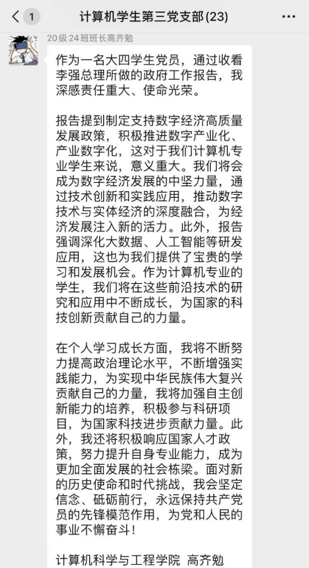 紧接着,有的同志强调了数字经济发展的重要性,表示要积极投身到数字产业化、产业数字化中去,为国家的经济发展贡献力量。有的同志则谈到了科教兴国战略的重要性,表示要不断提升自己的学习水平,为国家的科技创新事业贡献自己的智慧。还有的同志则表达了对党和人民的信任和支持,表示将不忘初心,牢记使命,始终保持共产党员的先锋模范作用。