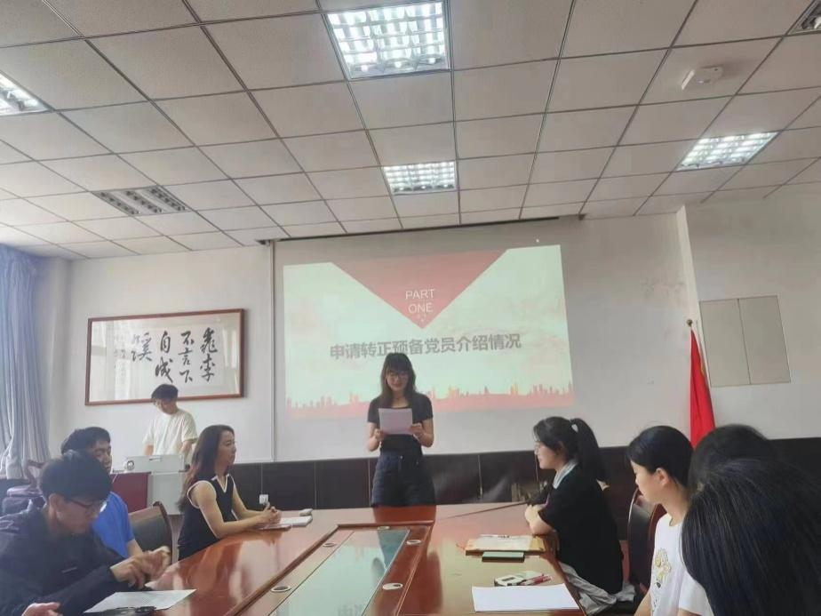 首先,申请转正预备党员发言: 杨变变等4名预备党员依次上台发言,他们回顾了预备期内的学习、工作和生活情况,表达了自己在思想上、行动上对党的忠诚和热爱,并郑重提出转正申请。他们的发言情真意切,展现了坚定的政治信仰和良好的个人素质。